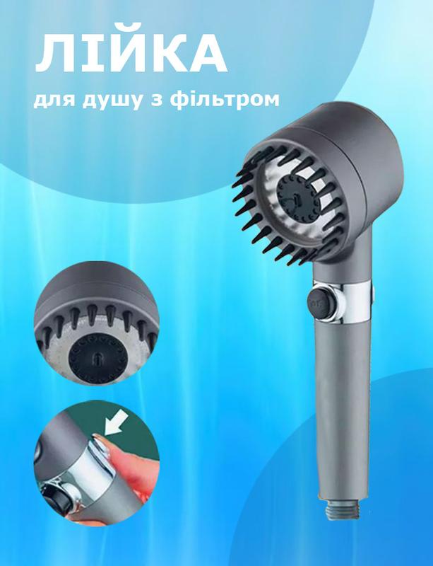 Лейка для душа с тремя режимами и массажным эффектом Happy Home 3 в 1 Лейка для душа с силиконовыми массирующими шипами по кругу является инновационным решением, обеспечивающим комфортный и расслабляющий душевой Массаж. Сочетание функциональности, эффективности и удовольствия делает эту душевую лейку с шипами идеальным аксессуаром для вашей ванной комнаты. Преимущества: - Силиконовые массажные шипы: Встроенные мягкие силиконовые шипы вокруг лейки имеют массажный эффект, что способствует расслаблению мышц и улучшению кровообращения. Этот массажный эффект помогает снять стресс и напряжение после долгого дня. - Три режима водоснабжения: Воронка оборудована тремя режимами водоснабжения: мягкий дождь, интенсивный массаж и смешанный поток. В зависимости от настроения и потребностей можно выбрать соответствующий режим. - Кнопка отключения воды: удобная кнопка на ручке позволяет мгновенно временно остановить подачу воды, что удобно, например при нанесении мыла или шампуня. Это также помогает экономить воду. - Встроенный фильтр: Интегрированный фильтр в ручке воронки улавливает загрязнение и хлор, обеспечивая более чистую и более безопасную воду для душа. Это особенно важно для тех, кто обращает внимание на качество воды. - Эта лейка для душа представляет собой универсальное решение для тех, кто ценит комфорт и функциональность во время душа. Она создает идеальный баланс между расслаблением и эффективностью, обогащая вашу душевую процедуру дополнительными наслаждениями. Мягкие массажные шипы, разнообразные режимы подачи воды, фильтр, вращение и наклон головки - все эти характеристики делают этот ворон отличным выбором для вашей ванной комнаты. Режимы: - Дождливый режим с большой площадью воды позволит вам отдохнуть от усталости дня, принимая расслабляющий душ. - Режим серфинга - он разбрызгивается как сильный дождь. - Импульсный режим, в котором вода находится под полным давлением, но достаточно, чтобы успокоить ваши уставшие мышцы. Комплектация: - Лейка для душа - Коробка
