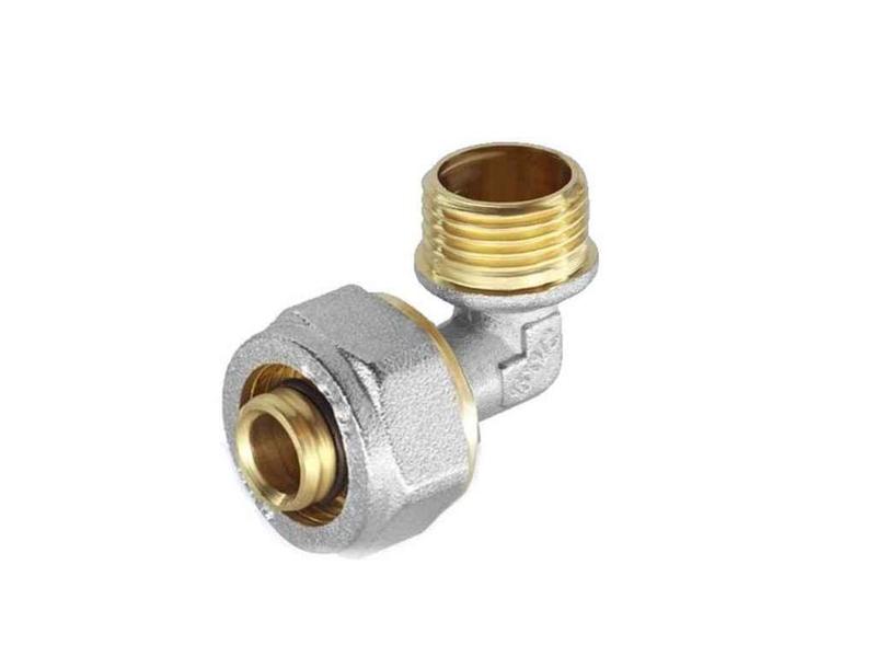 Опис Фітинги для металопластикових труб - сполучна частина труби, що встановлюється в місцях развлетвленной, поворотів для герметичного зєднання. Фітинги застосовуються для монтажу металопластикових труб. За рахунок того, що фітинги виготовляються з латуні з великим вмістом міді, вони міцні та довговічні. Для запобігання окислення латунний фітінг покривається нікелем. Це дозволяє не тільки збільшити термін експлуатації, але і зберегти гарний зовнішній вигляд протягом багатьох років. Характеристики Вид різьби: зовнішня різьба Матеріал фітинга: нікельована латунь Розмір фітинга: 20х1/2 Країна виробник: for EU Тип фітинга: кут