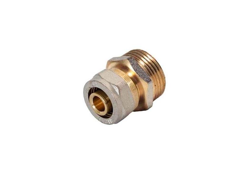 Опис Фітинги для металопластикових труб - сполучна частина труби, що встановлюється в місцях развлетвленной, поворотів для герметичного зєднання. Фітинги застосовуються для монтажу металопластикових труб. За рахунок того, що фітинги виготовляються з латуні з великим вмістом міді, вони міцні та довговічні. Для запобігання окислення латунний фітінг покривається нікелем. Це дозволяє не тільки збільшити термін експлуатації, але і зберегти гарний зовнішній вигляд протягом багатьох років. Характеристики Вид різьби: зовнішня різьба Матеріал фітинга: нікельована латунь Розмір фітинга: 16х3/4 Країна виробник: for EU Тип фітинга: зганяння