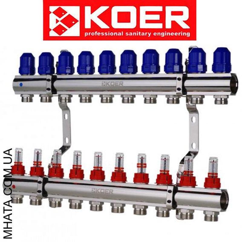Коллектор для системы "теплый пол" koer на 10 выхода с термодатчиком и расходомером (чехия...