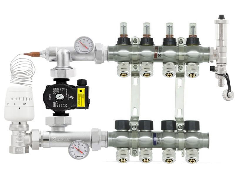 Спеціалісти нашого магазину постаралися трохи полегшити вам підбір комплектуючих для водяної теплої підлоги та представляють готовий комплект управління водяною теплою підлогою "Колектор в зборі Raftec". Завдяки професійному підбору компонентів (використовуються тільки брендовані комплектуючі RaftecTM) цей комплект готовий до встановлення та мінімізує потребу в додаткових деталях. До комплекту поставки входить : 1. Колектор на 4 пари виходів RaftecTM -- забезпечує ефективний розподіл теплоносія. 2. Євроконус RaftecTM (8 шт.) -- для надійного під'єднання труб до колектора, що забезпечує герметичність системи. 3. Змішувальний вузол з кінцевиком (кінцевий комплект) RaftecTM -- забезпечує точне змішування теплоносія, що дозволяє налаштовувати необхідну температуру води для комфортного обігріву. Кінцевик дозволяє випускати зайве повітря із системи, а також за потреби зливати теплоносій у необхідній кількості. 4. Циркуляційний насос TATRA-line -- сприяє постійному руху теплоносія по контурах, забезпечуючи стабільну температуру підлоги у приміщенні. Таким чином, це повна комплектація колектора, готового для підключення труб і під'єднання до вашої системи опалення. Все, що вам залишається зробити, -- це встановити його в систему та насолоджуватися комфортним обігрівом. Ця колекторна група розрахована на ЧОТИРИ контурів теплої підлоги. Якщо ви шукаєте колектор в зборі з іншою кількістю виходів, переходьте в розділ "Колектори в зборі". Якщо ж вас цікавлять інші комплектуючі для теплої підлоги (труби, екранована підкладка, демпферна стрічка) або окремі комплектуючі для колектора -- переходьте в розділ "Тепла підлога Водяна" на нашому сайті ************************ Переваги нержавіючої сталі та універсальність установки Нержавіюча сталь, з якої виготовлений колектор, відрізняється високою міцністю та стійкістю до корозії, що робить її ідеальним вибором для тривалої експлуатації. Такий матеріал також сприяє легкому монтажу в різних типах систем опалення. Цей колекторний блок забезпечує стабільність температури, рівномірний розподіл тепла та значну економію енергоресурсів. Легкість у монтажі та використанні Завдяки повній комплектації, колектор в зборі з нержавіючої сталі потребує мінімум часу та зусиль для установки. Це оптимальний вибір для тих, хто цінує високу якість, зручність та ефективність в управлінні теплою підлогою. Якщо у вас виникли труднощі з підбором потрібного вам варіанту, сміливо звертайтеся за консультацією за ном.тел. +38**********. Або зв'яжіться з нами через месенджери: На нашому сайті *********************** ви завжди знайдете широкий асортимент обладнання для обігріву та першокласний сервіс.