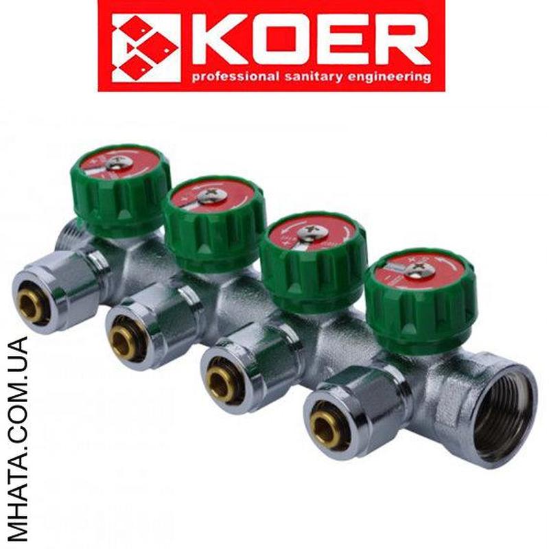 Всі продукція торгової марки "KOER" виробляється на новітньому обладнанні Чеського заводу "Dieffenbacher-cz". Купуючи товар торгової марки "КОЕR" Чехія, ви отримаєте високу якість за прийнятною ціною. Розподільний колектор KOER призначений для контролю та розподілу теплоносія в системах опалення. Колектор — це просто труба, яка має виходи для під'єднання інших трубопроводів: З двох сторін на колекторах є різь зовнішні або внутрішні. Колектори бувають на різну кількість контурів: від двох і більше. Коли потрібне плавне регулювання потоків робочого середовища, необхідний колектор типу, обладнаний вбудованими вентилями. Конструкція колекторів із вентильним покриттям містить латунний нікельований корпус 1. Обертання латунного штока 3 призводить до лінійному переміщенню повзуна золотуха 4 зі змінною золотниковою EPDM-прокладкою 5, яка кріпиться до штока гвинтом. Штовхання фіксується пружинною скобою 7. Як сальниковий ущільнення штока використовуються два кільця 6 з EPDM. Латунна вентильна муфта 2 має нарізне приєднання до корпусу. Герметичність цього з'єднання забезпечується прокладним кільцем з EPDM 8. Регулювання витрати через вентиль здійснюється обертанням ручки 9, виготовленої з пластику ABS. Колектор комплектується набором ручок червоного та синього кольору. Технічні характеристики: Кількість виходів: 4 Різь колекторної балки: 3/4" дюйма Діаметр виходу на трубу: 16 Виробник: KOER - Чехия