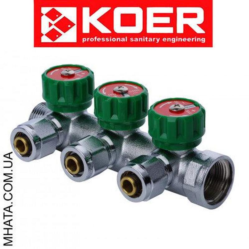 Все продукция торговой марки "KOER" производится на новейшем оборудовании Чешского завода "Dieffenbacher-cz". Приобретая товар торговой марки "КОЕR" Чехия, вы получите высокое качество по приемлемой цене. Распределительный коллектор KOER предназначен для контроля и распределения теплоносителя в системах отопления. Коллектор – это попросту труба, у которой есть выходы для подключения других трубопроводов: С двух сторон на коллекторах есть резьбы наружные или внутренние. Коллекторы бывают на разное количество контуров: от двух и больше. Когда необходимо плавное регулирование потоков рабочей среды, необходим коллектор типа, оснащенный встроенными вентилями. Конструкция коллекторов с вентильным перекрытием содержит латунный никелированный корпус 1. Вращение латунного штока 3 приводит к линейному перемещению ползуна золотника 4 со сменной золотниковой EPDM-прокладкой 5, которая крепится к штоку винтом. Шток фиксируется пружинной скобой 7. В качестве сальникового уплотнения штока используются два кольца 6 из EPDM. Латунная вентильная муфта 2 имеет резьбовое присоединение к корпусу. Герметичность этого соединения обеспечивается прокладочным кольцом из EPDM 8. Регулировка расхода через вентиль производится вращением ручки 9, выполненной из пластика ABS. Коллектор комплектуется набором ручек красного и синего цвета. Технические характеристики: Количество выходов: 3 Резьба коллекторной балки: 3/4" дюйма Диаметр выхода на трубу: 16 Производитель: KOER - Чехия