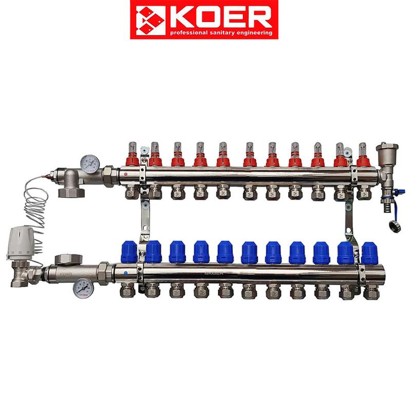 Колекторний вузол у зборі для системи "теплий пол" koer на 11 виходів (чехія)