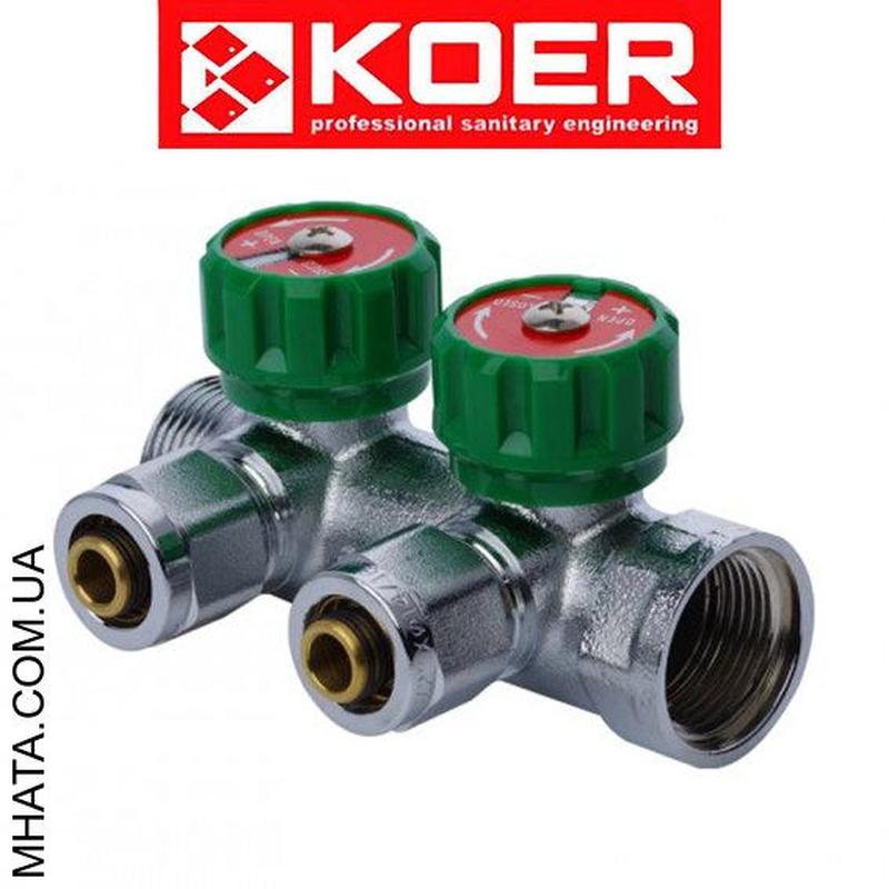 Всі продукція торгової марки "KOER" виробляється на новітньому обладнанні Чеського заводу "Dieffenbacher-cz". Купуючи товар торгової марки "КОЕR" Чехія, ви отримаєте високу якість за прийнятною ціною. Розподільний колектор KOER призначений для контролю та розподілу теплоносія в системах опалення. Колектор -- це просто труба, яка має виходи для під'єднання інших трубопроводів: З двох сторін на колекторах є різь зовнішні або внутрішні. Колектори бувають на різну кількість контурів: від двох і більше. Коли потрібне плавне регулювання потоків робочого середовища, необхідний колектор типу, обладнаний вбудованими вентилями. Конструкція колекторів із вентильним покриттям містить латунний нікельований корпус 1. Обертання латунного штока 3 призводить до лінійному переміщенню повзуна золотуха 4 зі змінною золотниковою EPDM-прокладкою 5, яка кріпиться до штока гвинтом. Штовхання фіксується пружинною скобою 7. Як сальниковий ущільнення штока використовуються два кільця 6 з EPDM. Латунна вентильна муфта 2 має нарізне приєднання до корпусу. Герметичність цього з'єднання забезпечується прокладним кільцем з EPDM 8. Регулювання витрати через вентиль здійснюється обертанням ручки 9, виготовленої з пластику ABS. Колектор комплектується набором ручок червоного та синього кольору. Технічні характеристики: Кількість виходів: 2 Різь колекторної балки: 3/4" дюйма Діаметр виходу на трубу: 16 Виробник: KOER - Чехия