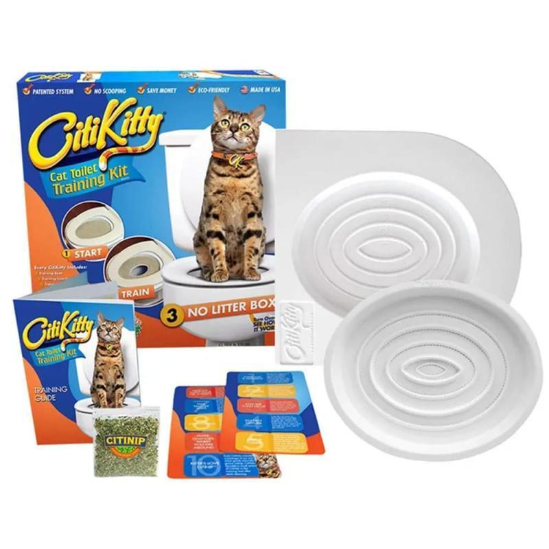 Набір для привчання кішки до унітазу CitiKitty. До набору входить серія лотків, які легко встановлюються поверх унітазу. Забезпечується поступове звикання тварини до унітазу. Легко встановлюється на унітаз. В наборі є трав'яний збір для привертання уваги кішки до унітазу. Матеріал - полімер. Паковання — коробка.