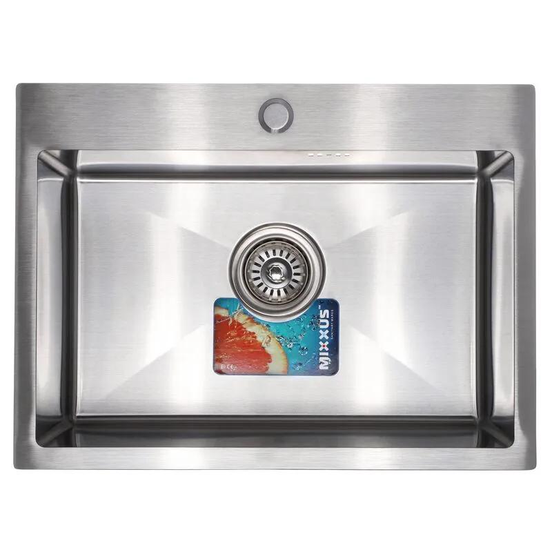 Mixxus MX5843-200×1.0-Handmade (MX0566) -- кухонна врізна мийка з нержавіючої сталі завтовшки 1,0мм, розмір 580×430×200мм. Пряма чаша без крила, ручне зварювання (Handmade). Стійка до пошкоджень, легко вмонтовується. У комплекті сифон, кріплення та ущільнювач. Установка змішувача - через стільницю
