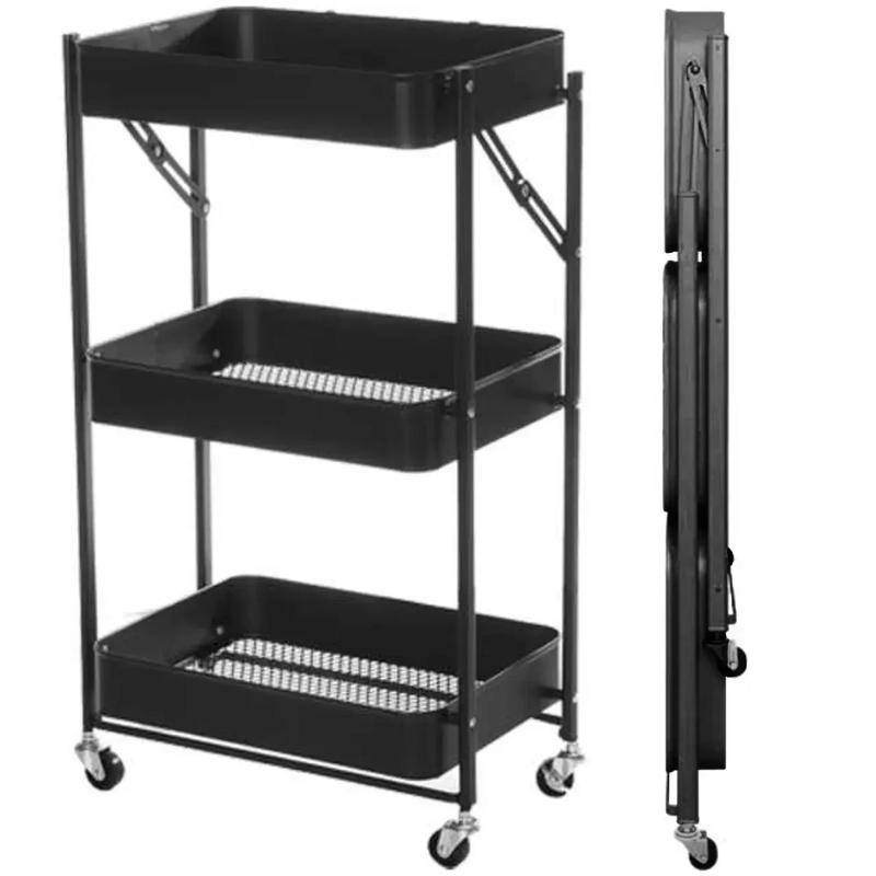 Етажерка стелаж металевий чорного кольору на 3 полиці на колесах