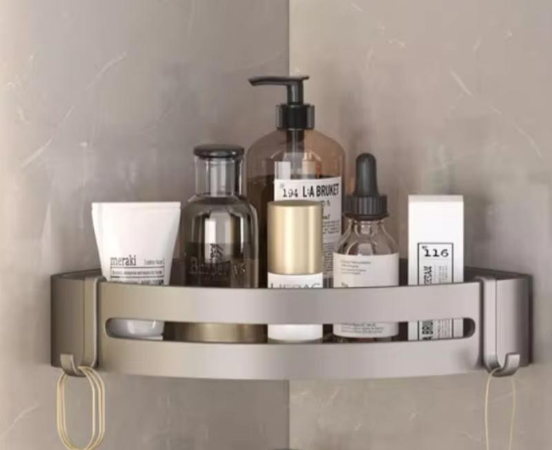 Самоклейна кутова полиця для ванної кімнати від Athand -- це зручне та стильне рішення для організації простору. Полиця обладнана гачками, що дає змогу розмістити не тільки засоби для душу та особистої гігієни, а й рушники, мочалки та інші аксесуари. Установлення не вимагає свердління: завдяки самоклейній основі, полиця кріпиться на будь-яку гладку поверхню, включно з плиткою та склом. Основні характеристики: - Розмір: компактна конструкція підходить для кутів, заощаджуючи місце. - Матеріал: міцний пластик, стійкий до вологи та цвілі. - Додатково: забезпечена гачками для підвішування аксесуарів. Полиця легко демонтується й не залишає слідів на стіні, що робить її ідеальним вибором для орендного житла.
