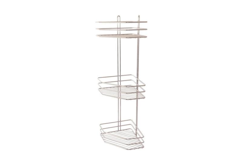 Пілочка для аксесуарів у ванну кімнату. Полиця кутова, потрійна з неіржавкої сталі, з настінним гвинтовим кріпленням.