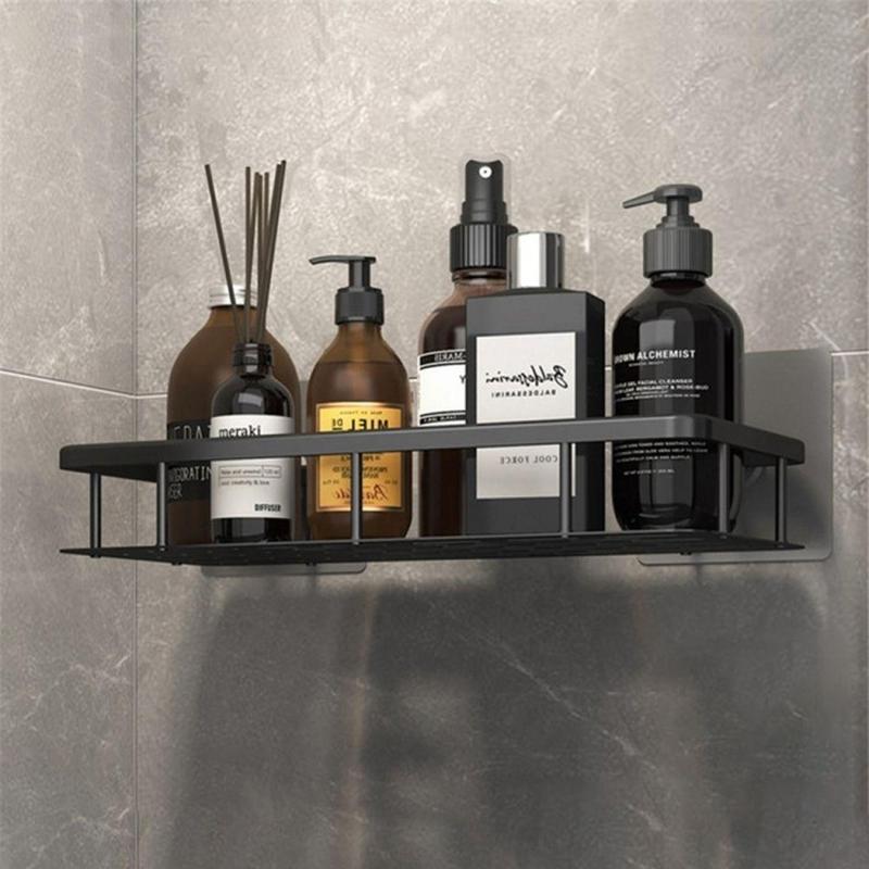 Сучасна алюмінієва настінна полиця у ванну кімнату, також можна використовувати на кухні для спецій і приправ. Підходить для зберігання туалетного приладдя, кремів і всіх жіночих/чоловіцьких баночок полиця кріпиться за допомогою тримача на надміцному скотчі (також є можливість прикріпити до стіни за допомогою болтів, що також входять до комплекту), без свердління, без використання будь-яких інструментів, без пошкодження стін, за лічені хвилини. Тип: Стелаж для зберігання Тип встановлення: Настінний Колір чорний розмір: 30*13*5см Функція: кухонний зливний кошик для зберігання, полиця для ванної кімнати, стелаж для зберігання туалетного приладдя Тип товару: Полиці та тримачі для ванн