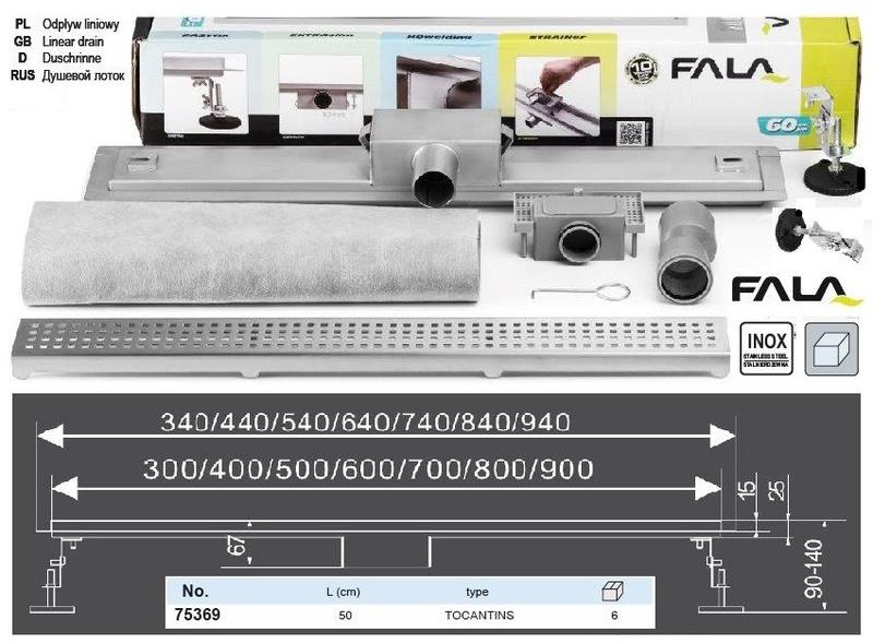 Лоток для душу модель "TOCANTINS " FALA-75369 Трап для душу FALA-це видминна идея, елегантно и практично организувати простир ванной кимнати. Широкий вибир розмирив дозволяе оптимально налаштувати його довжину до розмирив кабини або плитки та дозволяе з бильшою свободою, ниж у випадку традицийних душових пиддонив, планувати мисце для душу. Виготовлений повнистю з нержавиючой стали AISI 304, яка характеризуеться стийкистю до корозий, миючих засобив и механичних пошкодженнь. Зливи душови FALA зручни, гарантують комфортну та ефективну експлуатацию протягом багатьох рокив: - SMARTthru - специальни панели ревизийни це 100% контроль прохидности и зручна чистка - EASYclean - легко утримувати в чистоти, завдяки гачку, який входить в комплект поставки - GRIPstrong - ручки яки стабилизують корпус, додаткове криплення конструкций на пидлози - HYDROcloth - мат ущильнювальнювачий в комплекти - необхидна складова при виконанни гидроизоляций - STRAINer - ефективне и мицне сито, яке запобигае забиванню сифона и полегшуе поточне обслуговування зливу - HQwelding - висока якисть, точни шви , яки гарантують герметичнисть зливу - EXTRAslim - виготовлений з нержавиючой стали AISI 304 дуже низький сифон, який полегшуе установку - Easyfиx - широкий диапазон регулювання висоти, який забезпечуе щильне прилягання видливу до поверхни пидлоги Видтик FALA, ви монтуете не хвилюйтеся - вси наши видливи мають 10 рокив гарантий! Характеристики: - довжина жолоба: згидно артикулу - визерунок решитки - TOCANTINS - материал: нержавиюча сталь AISI 304 - ширина: 70 мм (додатково комир биля 2 см з кожной сторони) - висота сифона: 52 мм Застосування: - ванни кимнати, душови кабини - плавальни басейни - пральни, котельни - балкони, тераси Вмист пакування: - пиддон для стоку з сифоном - плитка для вставки решитки - перехидник 50/40 мм - регульовани нижки криплення - килимок изоляций - гак для пидйому решитки - керивництво по експлуатаций - гарантийний талон Торгова марка FALA е великою частиною торговельной корпораций TOYA S. A. Цей пидроздил пропонуе широкий вибир аксесуарив для ванной, змишувачи води и душових панелей. Сучасний дизайн и увага до деталей, призводять до того, що ванна кимната у вашому будинку стають мисцем спокою и гармоний, а кухня - мисцем зручного обслуговування. Асортимент марки FALA йде назустрич Вашим очикуванням.
