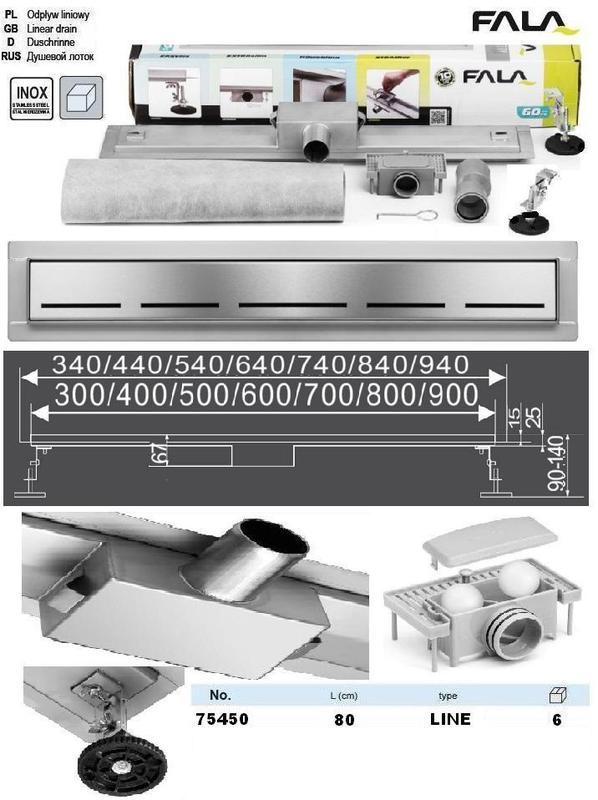 Лоток для душу модель "LINE" FALA-75450 Трап Wave - чудова идея для елегантного та практичного використання примищення для ванной кимнати. Широкий вибир доступних розмирив дозволяе оптимально пидигнати його довжину до розмирив кабини або плитки и дозволить розширити простир билше ниж традицийни пиддони для душу. Вин виконаний повнистю з нержавиючой стали AISI 304, яка характеризуеться стийкистю до корозий, миючих засобив и механичних пошкоджень. Душови канали Wave оснащени засобами, яки гарантують комфортну та ефективну роботу протягом багатьох рокив: - WET & DRY - специальна будова сифону, яка запобигае потраплянню запахив та черв'якив пид час використання та писля сушиння; - EASYclean - легко чистити завдяки гачку, що входить до комплекту; - GRIPstrong - ручки, що стабилизують корпус, додаткова жорсткисть конструкций в пидлози; - HYDROполотно - ущильнювальний мат - необхидна частина при гидроизоляций; - STRAINer - ефективна решитка, що запобигае забиванню сифона и полегшуе поточне обслуговування дренажу; - HQwelding - високоякисни точни зварни шви, яки гарантують герметичнисть; - EXTRAslim - виготовлений з нержавиючой стали AISI 304 дуже низький сифон, що полегшуе монтаж; - EASYfix - широкий диапазон регулювання висоти, що дозволяе регулювати стик до поверхни пидлоги. Стик Fala встановлюеться без турбот - вси наши видтоки мають 10-ричну гарантию! Технични характеристики: - довжина жолоба: 80 см - ситка з визерунком - LINE - материал: нержавиюча сталь AISI 304 - ширина: 70 мм (додатковий фланець близько 2 см з кожной сторони) - висота сифона: 52 мм Призначення: - ванни кимнати, душови кабини - басейни - пральни, котельни - балкони, тераси Вмист пакета: - зливний жолоб з сифоном - решитка - перехидник 50/40 мм - регульовани ножки криплення - изоляцийний мат - гачок для пидйому решитки - инструкция з експлуатаций Торгова марка FALA е найбильша частина торговой корпораций TOYA S. A. Цей пидроздил пропонуе широкий вибир аксесуарив для ванной, змишувачив води и душових панелей. Сучасний дизайн и увага до деталей, призводять до того, що ванна кимната у вашому будинку стають мисцем спокою и гармоний, а кухня - мисцем зручного обслуговування. Асортимент марки FALA йде назустрич Вашим очикуванням.