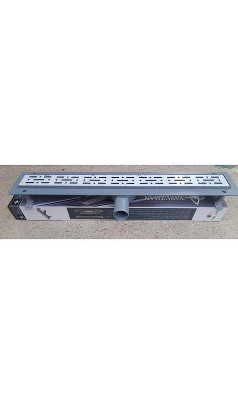 Душовий канал Yavuzhan, горизонтальний вихід. Він вмонтується в стяжку підлоги, забезпечуючи вільний злив брудної води в каналізаційну систем. Матеріал ґрат нержавіюча сталь 60х796 мм. Гідрозатвор сухий. Використовується для водовідведення з душових, басейнів та інших приміщень. Корпус із порогом виготовлений із стійкого до агресивних середовищ, міцного пластику. Конструкція каналу розбірна, що при необхідності, дає можливість без зайвих труднощів почистити виріб від сміття, а також захищає ванну кімнату від неприємного запаху з каналізації. Висота трапу регулюється. Відведення в каналізацію стандартного діаметра - 50 мм, повертається на 360. Конструкція трапа складається з наступних елементів: -сифон чи сухий затвор; -приймальний корпус лійкоподібної форми; -відвідна труба; -Сітчастий захисний фільтр; -декоративні грати.