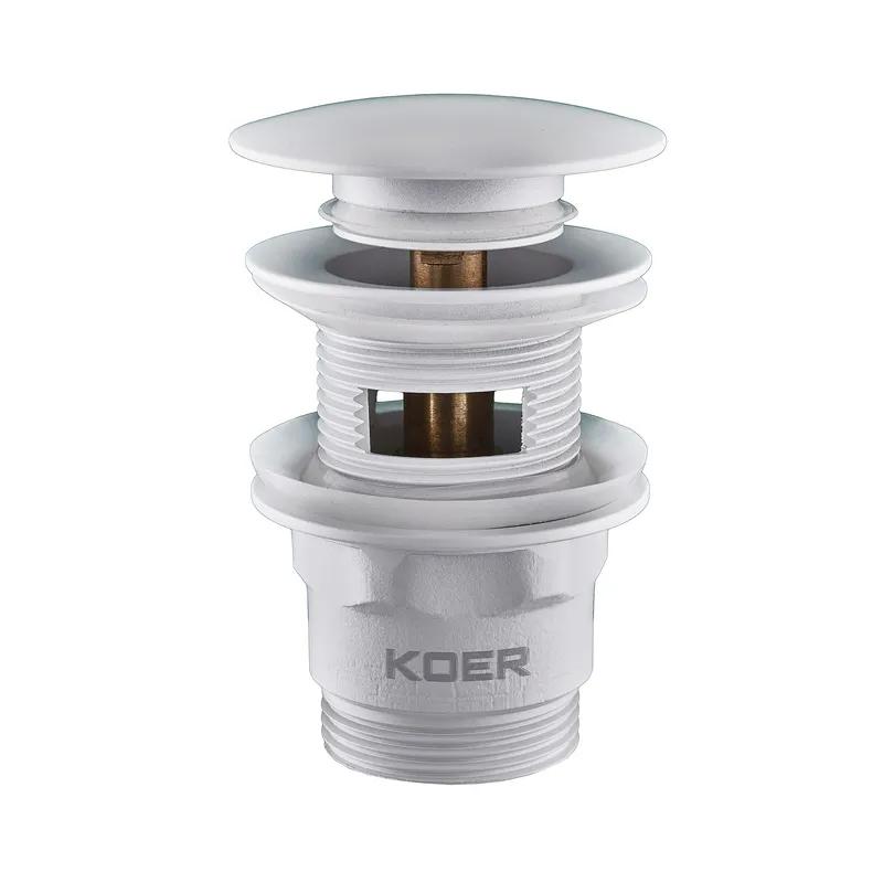 Донний клапан для умивальника з переливом koer pw-03-03 1 1/4" (кнопка) (білий) (kr3395) y...