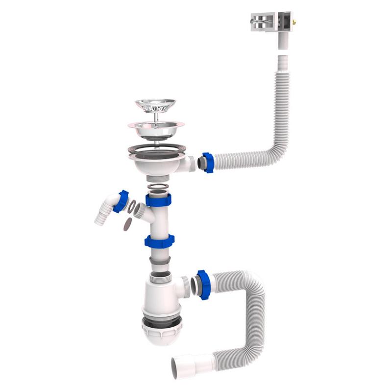 Сифон для кухонной мойки с нержавеющим выпуском под стиральную машину гибкий отвод квадрат...