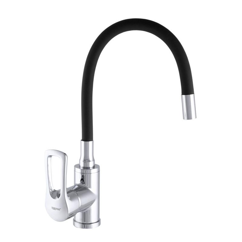 Змішувач для кухні zerix sar 181 з силиконовим виливом чорний (zx2771)