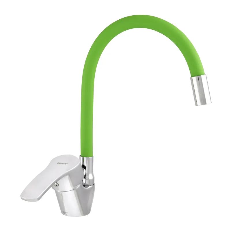 Змішувач для кухні zerix b 279 із зеленим гнучким виливом (zx0444) yousf