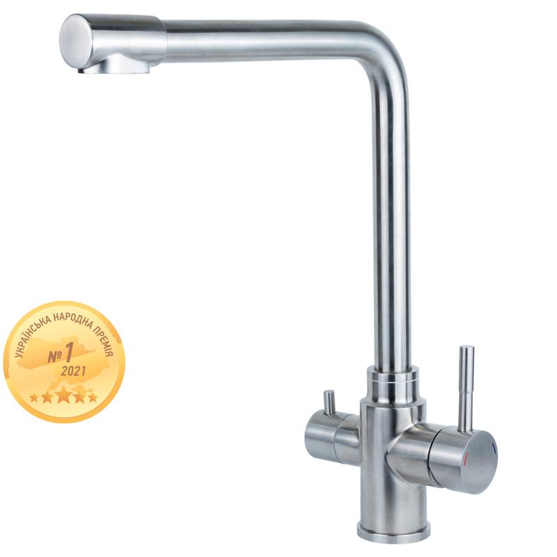 Змішувач kt ø35 для кухні гусак з виходом для питної води на гайці ss aquatica kt-4b770p (...
