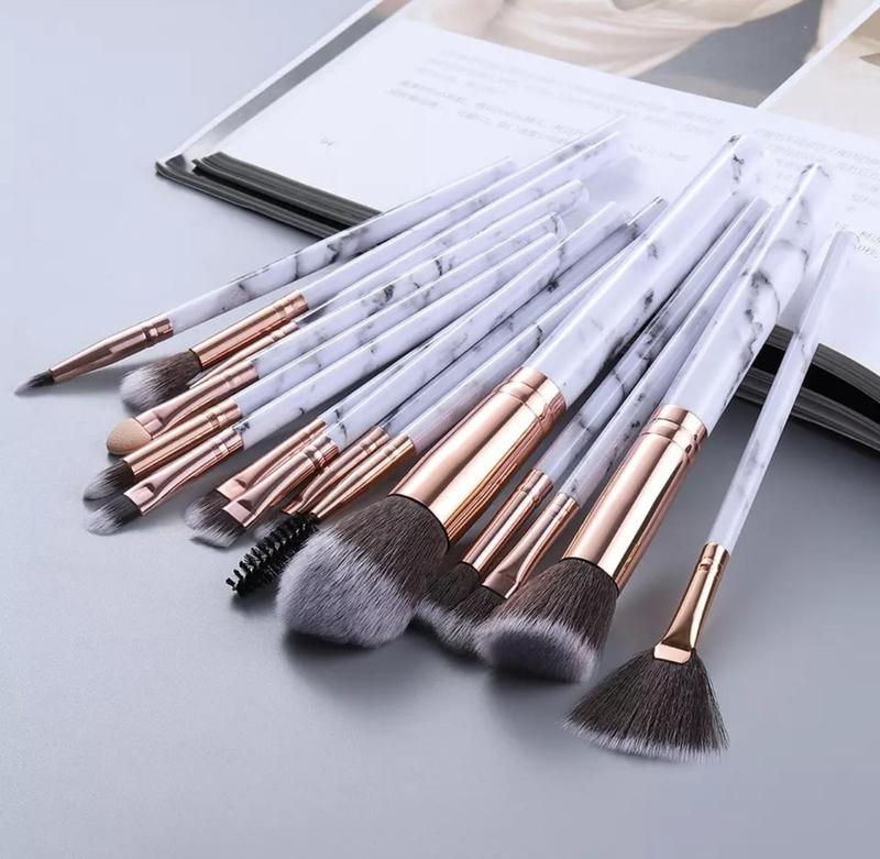 Набір мармурових пензликів для макіяжу 15 шт. (білий)