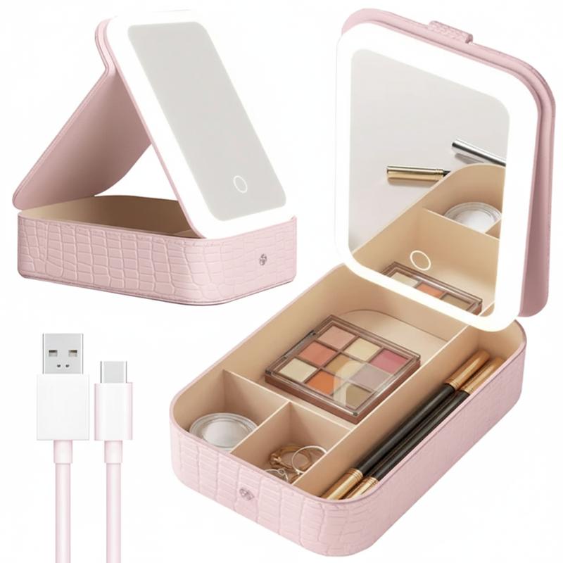 Дорожня бьюті-косметичка з led дзеркалом на акумуляторі рожева