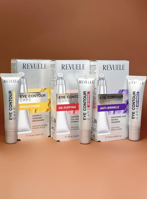 Крема під очі від бренду Revuele 1. Освітлюючий 2. Проти набряків 3. Проти зморшок Обирай, який підійде саме для тебе Країна виробник: Болгарія