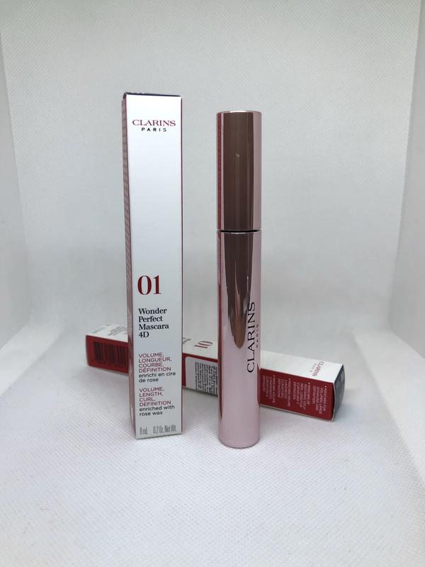 Особенности Clarins Wonder Perfect Mascara 4D: - на 10,1 % увеличивает естественный объем ресниц; - на 5,6 % удлиняет волоски; - подкручивает ресницы; - насыщенный черный оттенок визуально «раскрывает» взгляд; - легко наслаивается; - непечатает на веках; - не осыпается в течение дня; - стойко «переносит» непогоду.