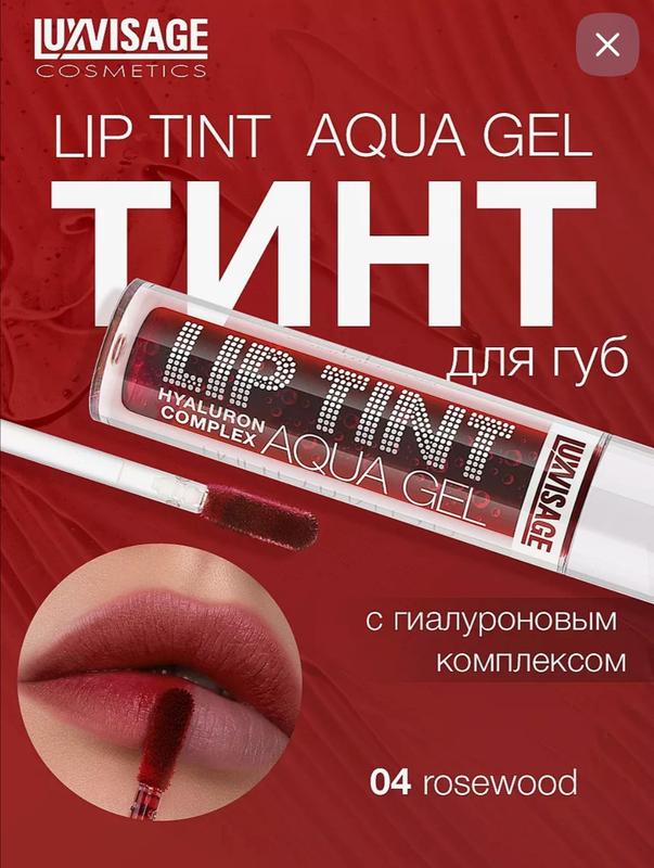 Тинт для губ luxvisage lip tint aqua gel с гиалуроновым комплексом, тон 04 (rosewood)