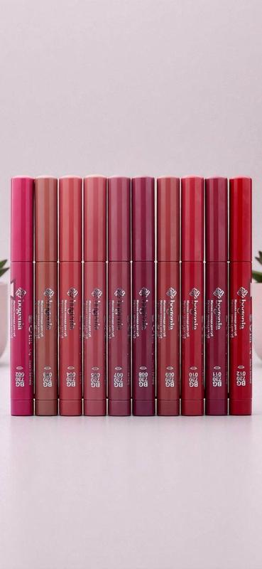 Помада- олівець Bogenia velvet waterproof matte Стійка матова помада-олівець для губ Velvet Waterproof Matte Bogenia Помада-олівець — це ідеальне поєднання зручності та стійкості в одному продукті. Velvet Waterproof Matte Bogenia BG730 – багатофункціональний продукт, який чудово підходить для створення ідеальних контурів губ та надання їм бархатистої матової текстури. Однією з найпривабливіших особливостей цієї помади-олівця – водостійкість. Незалежно від погодних умов або тривалості носіння, ви можете бути впевнені, що ваш макіяж залишиться бездоганним. Це особливо важливо у спекотні дні або на вечірках, коли потрібна надійна стійкість. Крім того, Velvet Waterproof Matte Bogenia BG730 має багату палітру відтінків, що дозволяє вам вибрати саме той, який підходить для вашого образу та тону шкіри. В асортименті – соковиті, актуальні відтінки, які зроблять ваш макіяж стильним та сучасним. Бархатиста текстура помади забезпечує легкість нанесення та комфортне відчуття на губах. За допомогою цієї помади у формі олівця, ви зможете не тільки підкреслити красу своїх губ, але й створити неповторний і стильний образ, який довго радуватиме вас своєю стійкістю та яскравістю. Країна виробник:Туреччина Інгредієнти : діоксид титану,жожоба Ефект:матовий Класифікація:професійна