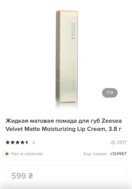 Жидкая матовая помада для губ zeesea velvet matte moisturizing lip cream, 3.8 г