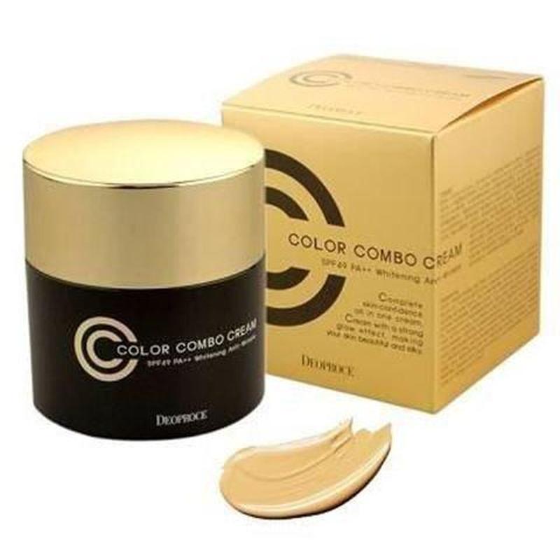 Идеальный макияж,защита и интенсивный уход и все это в одном СС - Combo креме Deoproce Color Combo Cream 40g СС крем относится к новому поколению тональных косметических средств, одновременно ухаживающих за кожей и придающих ей здоровый вид и легкий влажный блеск. Deoproce Color Combo Cream выравнивает и освежает тон лица и оказывает тройное функциональное действие: защищает от солнца (SPF49/PA++), осветляет пигментацию и разглаживает мимические морщины. СС крем содержит цветные капсулы ("технология изменения цвета"), которые при нанесении на кожу лопаются и превращают его из белого в бежевый, подходящий под тон кожи, крем. Представлен в оттенках: №13 Светлый бежевый (Light Beige) - в наличии №21 Натуральный бежевый (Natural Beige) - в наличии №23 Песочный бежевый (Sand Beige) - в наличии 4 функции крема: -Сияющая база под макияж -Идеальное натуральное тонирование без эффеккта маски -Высокая защита от солнца -SPF 49 -Интенсивное увлажнение и антивозрастной уход В состав крема Deoproce Color Combo Cream входят: экстракт корня солодки и экстракт цветов ромашки, которые успокаивают воспаления, раздражения и покраснения, оказывают антибактериальное действие; экстракт алоэ вера и гиалуроновая кислота, которые увлажняют кожу, смягчают и поддерживают оптимальный баланс влажности в течение дня; экстракт портулака и экстракт центеллы азиатской, которые ускоряют регенерацию клеток кожи, стимулируют синтез коллагена, улучшают заживление и восстановление кожи; ниацинамид, осветляющий тусклый тон лица и уменьшающий пигментацию аденозин, оказывающий действие против морщин; Крем Deoproce Color Combo Cream обеспечивает высокую степень солнцезащиты (SPF49/PA++) и делает кожу яркой, сияющей и шелковистой. Формула 10 Free: крем не содержит талька, парабенов, спирта, синтетических красителей, триэтаноламина, диоксана, фтолатов, MEA, DEA, формальдегида. Крем подходит для чувствительной и склонной к раздражению кожи.