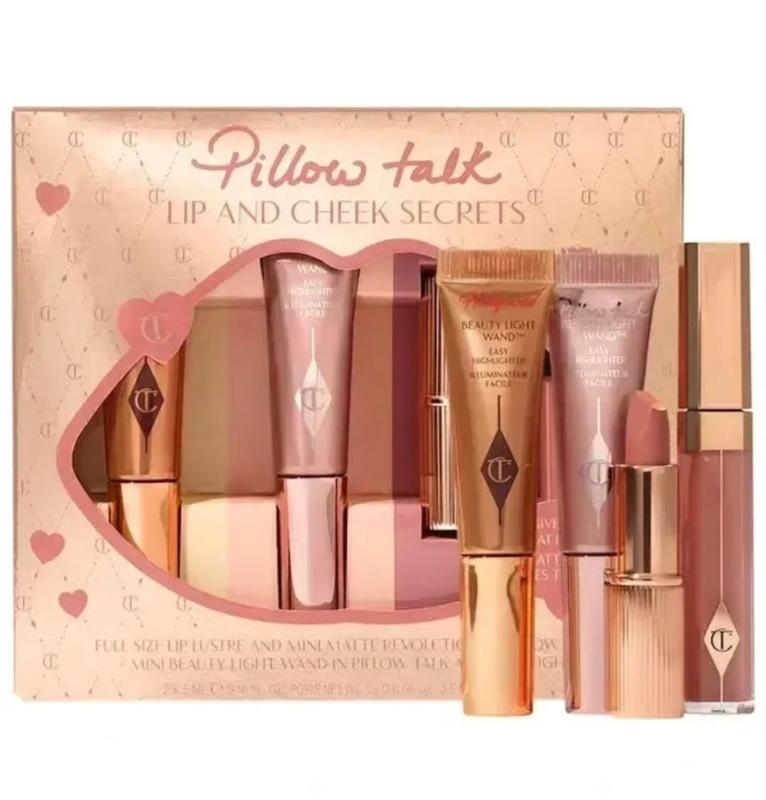 Charlotte Tilbury Лімітований набір Pillow Talk Lip & Cheek Secrets Ціна-2350грн Charlotte Tilbury Pillow Talk Lip and Cheek Secrets Set - це чарівний набір для створення незабутнього образу, який підкреслить красу ваших губ та щік. З його допомогою ви можете легко створити класичний образ Pillow Talk, що включає як гармонійний макіяж губ, так і ідеально підібрані засоби для щік. Вміст набору дозволяє досягти ефекту здорового сяйва та візуально збільшити об'єм губ, завдяки унікальним формулам, що забезпечують не лише чудовий колір, але й догляд за шкірою. Кожен продукт у наборі розроблений для того, щоб ви могли легко та швидко створити повний макіяж, який підійде для будь-якого випадку. Міні помада у відтінку Pillow Talk Original (1.5g) Міні хайлайтер відтінку Pillow Talk (5ml) Міні хайлайтер у відтінку Spotlight (5ml) Повнорозмірний блиск для губ Pillow Talk Lip Lustre (3.5ml)
