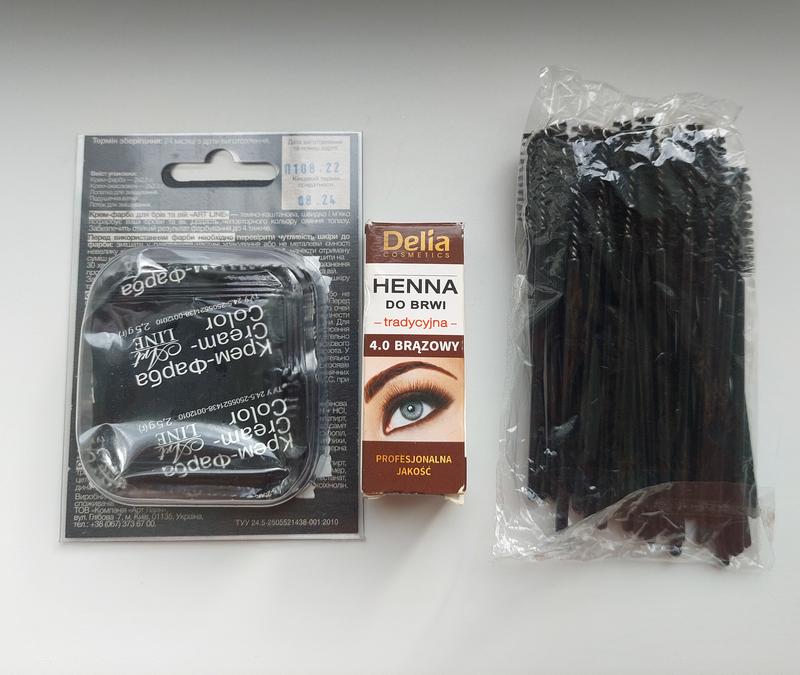 Все абсолютно нове. В наборі: 2 краска для брів та вій ( ART LINE та Delia - всі коричневого кольору) та одноразові щіточки для вій та брів (40 шт). ОПЛАТА ТІЛЬКИ НА КАРТУ ПРИВАТБАНКА 100% (БЕЗПЕЧНОЇ ОПЛАТИ ТА ПЕРЕДОПЛАТИ НЕМАЄ!!!). Відправка укрпошта (+5 грн за упаковку), нова пошта та MEEST.