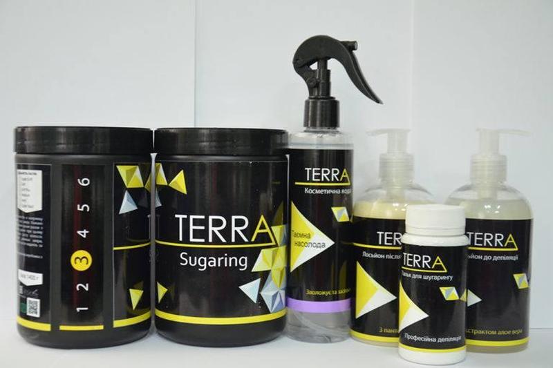 НАБІР ДЛЯ ПРОФЕСІЙНОГО ШУГАРИНГУ TERRA PROFESSIONAL У складі набору: 1.Цукрова паста ТЕRRА BLACK 1400 г - 2 шт (щільність на вибір) 2.Косметична вода для видалення залишків цукрової пасти TERRA 250 мл - 1шт (аромат на вибір) 3.Лосьйон до депіляції TERRA 150 мл - 1 шт 4.Лосьйон після депіляції TERRA 150 мл - 1 шт. 5.Тальк для шугарінгу 100 г - 1шт