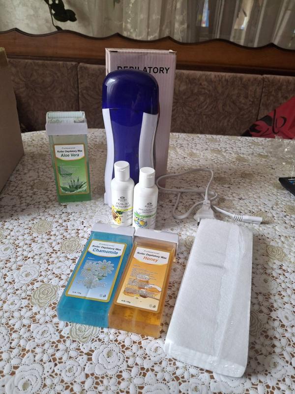 продам набор для депиляции кассетный воскоплав 2 кассеты по 150 мл и 1 кассета примерно 75 мл гель до депиляции 50 мл лосьон после депиляции полоски для депиляции около 40 шт.
