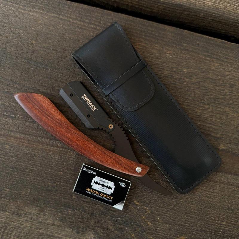 Небезпечна бритва (шаветка) TERMAX зі змінними лезами і дерев'яною ручкою забезпечить Вам якісне гоління без витрат часу на підтримку леза. Ця шаветка призначена для швидкого та ідеального видалення щетини, що робить її незамінним інструментом для догляду за обличчям. Комплектація: - Бритва: Основний інструмент для гоління. - Чохол: Зручний чохол для зберігання та транспортування бритви. - Упаковка лез: Набір змінних лез для забезпечення тривалого використання. Особливості та переваги: 1. Змінні леза: Завдяки змінним лезам, Ви зможете легко та якісно видалити волосся навіть у важкодоступних місцях. Це забезпечує чисте та точне гоління, що особливо важливо для контурів бороди та вусів. 2. Спеціально розроблений тримач леза: Тримач складається з двох частин, які затискають половинку леза з двох сторін. Це дозволяє встановлювати ціле лезо для гоління, забезпечуючи стабільність та безпеку під час використання. 3. Дерев'яна ручка: Високоякісна дерев'яна ручка не тільки додає естетичної привабливості, але й забезпечує комфортний та надійний хват під час гоління. 4. Висока якість виробу: TERMAX виготовлена з високоякісних матеріалів, що гарантує довгий термін експлуатації. Ви можете бути впевнені в надійності та довговічності цього інструменту. Переваги використання шаветки: - Економія часу: Завдяки змінним лезам, Вам не потрібно витрачати час на заточку та підтримку леза в належному стані. - Гігієнічність: Змінні леза забезпечують високий рівень гігієни, що особливо важливо при використанні шаветки в професійних умовах, наприклад, у барбершопах. - Економічність: Використання змінних лез робить шаветку економічним варіантом у довгостроковій перспективі. - Екологічність: Можливість заміни лез знижує вплив на навколишнє середовище, роблячи шаветку більш екологічним вибором. Як користуватися шаветкою: 1. Підготовка шкіри: Перед голінням рекомендується підготувати шкіру, використовуючи теплу воду та засоби для пом'якшення волосся. 2. Встановлення леза: Вставте нове лезо в тримач, переконавшись, що воно надійно закріплене. 3. Гоління: Голіть волосся короткими, обережними рухами, уникаючи надмірного тиску на шкіру. 4. Догляд за шаветкою: Після використання промийте шаветку під проточною водою та висушіть її. Шаветка TERMAX стане надійним помічником у Вашому щоденному догляді за обличчям, забезпечуючи чисте та комфортне гоління.