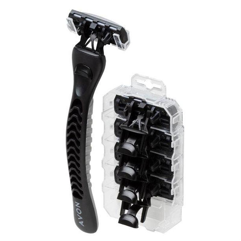 Чоловіча бритва зі змінними касетами (5 шт.) Містить 1 ергономічну ручку та 5 бритвених картриджів. Матеріал: АБС-пластик, гума, корозійностійка сталь. Розмір: 14,5 см (довжина) x 4,5 см (ширина