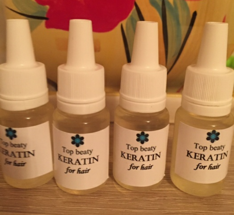 Кератин – природный белок, который обеспечит превосходную заботу об ослабленных и тусклых волосах, или насытит кожу полезными витаминами. -добавлять 10 капель в 30 мл маску или бальзама для волос , смешать и нанести на волосы на 10-15 мин . Полезные свойства Благодаря своим микроскопическим размерам, молекулы белков кератина способны проникнуть вглубь волос, ногтевых пластин или пор кожи. Это позволяет в кратчайшие сроки восстановить их и укрепить. Помимо этого, продукт способен: насытить волосы полезными протеинами и пептидами; оказывать кондиционирующий эффект; увлажнить кожу; выпрямить волосы и сделать их более послушными; защитить волосы и кожу от негативного воздействия; придать волосам дополнительный объем и стимулировать их рост; в комплексе с коллагеном разгладить мелкие морщины.