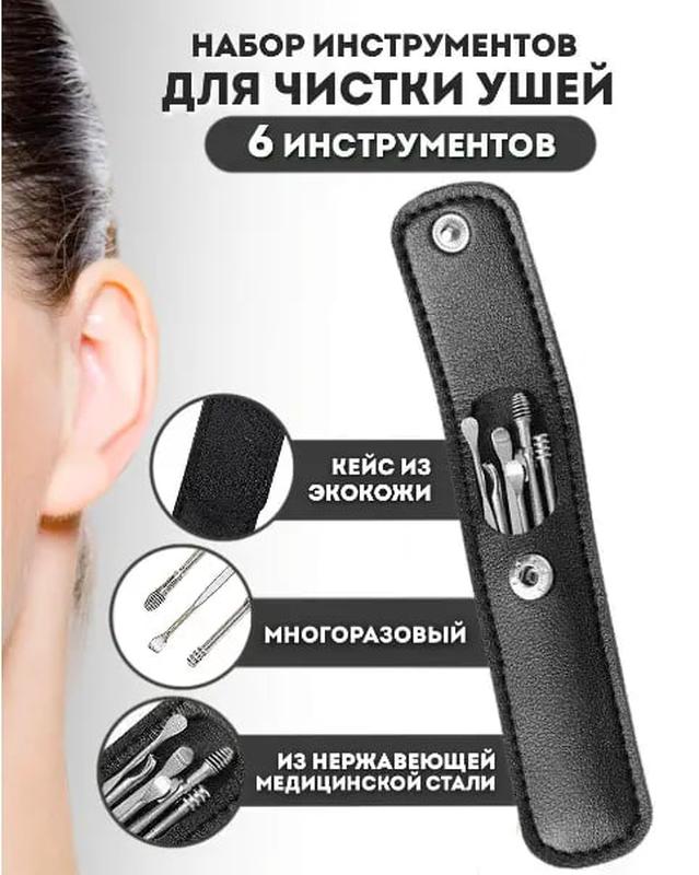 Инструмент для чистки ушей 6 предметов в кожанном чехле