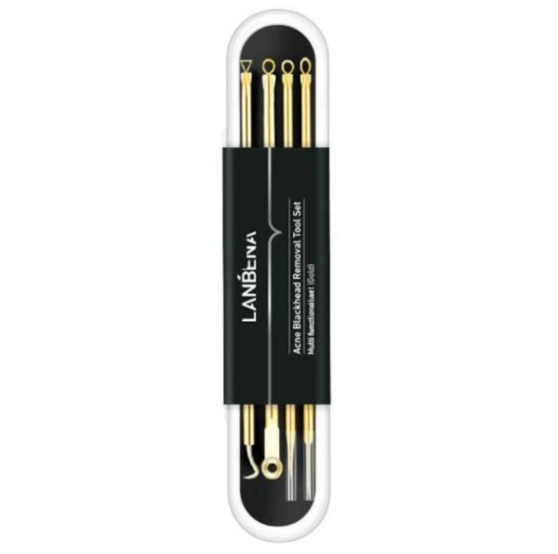 Набір містить 4 двосторонні інструменти, які підходять для проколювання та видалення вугрів та висипань та усунення чорних крапок.