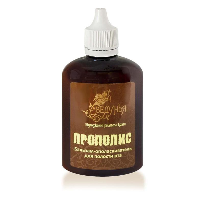 ПРОПОЛІС - бальзам-ополіскувач для ротової порожнини. Це не просто освіжувач дихання, а незамінний компонент домашньої аптечки. -сприяє швидкому загоєнню ран у ротовій порожнині Склад: екстракти лепехи, кору дуба, ромашки, фенхелю, прополісу. Ефірні олії м'яти перцевої, чайного дерева, шавлії. Спосіб застосування: концентр розводити водою у співвідношенні 1:10, використовувати при загостренні пародонтозу, кровотечі ясен, зубних болях. При сильному зубному болю розбавити 1:1 і потримати розчин близько 1 хвилини. Рекомендується також використовувати при ангінах, танзелітах, хворобах горла. Використовувати щонайменше 2-3 разів на день, полоскати щонайменше 30 секунд. Не глотати та не застосовувати внутрішньо. Флакон 100 мл