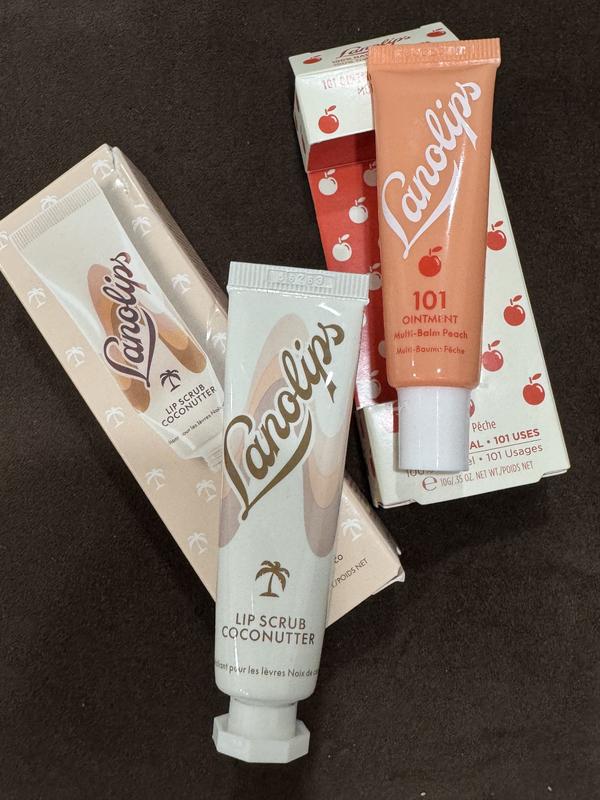 В основі всіх засобів Lanolips - високоочищений медичний ланолін, компонент, який отримують при промиванні вовни овець, і саме австралійський ланолін вважається одним з кращих в світі. У ланоліну є безліч плюсів: це і ідеальне сприйняття шкірою - його молекулярна структура нагадує власний жир шкіри, і сильне живлення і зволоження, і заживляюще/відновлюючі властивості, але він вважається досить алергенним, тому продукти з ним небажано застосовувати при схильності до алергії шкіри й екземі. 💫Скраб для губ Lanolips Lip Scrub Coconutter 10g Новый скраб для губ Lanolips — это первый шаг в уходе за губами, который сделает губы мягкими, гладкими и эластичными. Скраб для губ Lanolips Coconutter — это 100% натуральный бальзам-скраб, изготовленный из нежного сахара и настоящих, мелко измельченных кусочков скорлупы кокоса, который сглаживает сухую, шелушащуюся кожу. В то время как 70% ланолина мгновенно делает губы мягкими и эластичными, раскрывая здоровый цвет губ и сияние. Шаг 1: Нанесите пальцами и аккуратно потрите губы в течение 15 секунд. Шаг 2: Удалите оставшиеся частицы скраба, чтобы оставить бальзам и раскрыть самые здоровые и гладкие губы. Используйте один раз в неделю или по мере необходимости 💫Бальзам для губ Lanolips 101 Ointment Multi- Balm 10g це багатоцільовий зволожуючий бальзам, розроблений для спрощення догляду за шкірою. 100% натуральний, його інноваційна формула виготовлена з ультрачистого медичного ланоліну медичного поєднання кокосового масла і кокосового молока, багатої антиоксидантами