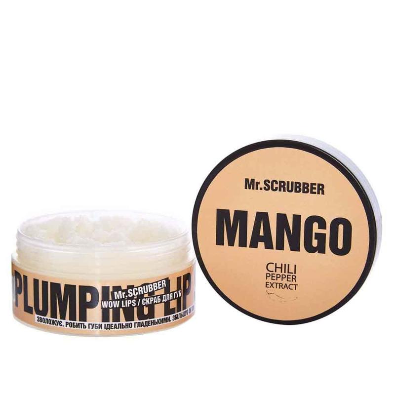 Ніжна шкіра губ найбільше страждає від впливу зовнішніх негативних факторів: обвітрювання, спека, мороз, макіяж. Натуральний скраб дозволить пом'якшити та ідеально вирівняти текстуру губ. Використання цукрової пудри в якості скрабуючого елемента робить догляд надзвичайно делікатним. Натуральні олії ефективно зволожують губи, а екстракт перцю чилі збільшує їх в об'ємі. Натуральний харчовий ароматизатор надає губам присмак соковитого манго. Як працює: - • цукор - надзвичайно делікатний скрабуючий елемент. Не подразнює ніжну шкіру, відлущує відмерлий шар епідермісу, завдяки високому вмісту заліза насичує клітини киснем і пришвидшує їх регенерацію, сприяє виведенню токсинів з організму; - • олія виноградних кісточок прискорює оновлення клітин, усуває подразнення і захищає чутливу шкіру від негативного зовнішнього впливу, розгладжує і пом'якшує губи, загоює мікротріщини; - • соєвий віск розгладжує і живить губи, усуває сухість, в'ялість, запобігає потоншанню шкіри, захищає губи від обвітрювання, спеки, УФ-променів, випарів та інших шкідливих впливів; - • вітамін Е миттєво загоює дрібні подразнення, захищає шкіру від ультрафіолету, розгладжує і оновлює губи, сприяє збереженню їх ніжності та краси; - • кукурудзяний крохмаль активно очищує і захищає шкіру від зовнішніх негативних впливів, має пом'якшувальну і живильну дію; - • екстракт перцю чілі розігріває шкіру і розширює судини, за рахунок чого відбувається притік крові до клітин, губи візуально збільшуються, контур і колір шкіри стає насиченішим і контрастним. Покращує живлення клітин і пришвидшує регенерацію, розгладжує і тонізує губи. Ефект: - • ніжні, пухкі губи; - • розгладження і пом'якшення; - • збільшення насиченості кольору і об'єму.