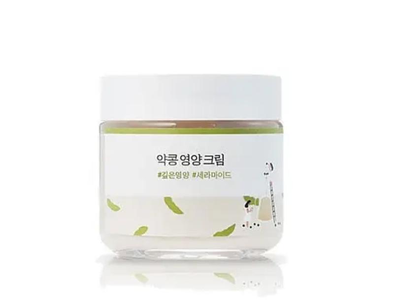 Крем ROUND LAB Soybean Nourishing Cream з екстрактом чорних соєвих бобів призначено для живлення та зволоження сухої, грубої, тьмяної та вікової шкіри. Засіб густу кремову текстуру, не залишає небажаної липкості. Крем надає тривале зволоження – до 48 годин, інтенсивно живить, укріплює, повертає еластичність, вирівнює текстуру покриву, додає здорового сяяння – підтверджено дослідженнями Ministry of Drug and Safety в Південній Кореї. Основні компоненти: екстракт чорних соєвих бобів є чудовим борцем з радикалами, його антиоксидантна властивість подібна до вітаміну С, але й ще з більшою стабільністю. Компонент освітлює шкіру за рахунок зменшення вироблення меланіну, а також надає позитивний аnti-age ефект для шкіри, цераміди NP укріплюють гідроліпідний бар’єр шкіри, сповільнює процес вікових змін аденозин , пантенол, екстракти листя базиліку та дерева нім знімають запалення та загоюють, гідрогенізований лецитин відновлює захисні функції шкіри,екстракт какао як антиоксидант, бореться з проблемою старіння шкіри та захищає шкіру від втрати вологи, екстракт червоних водоростей сприяє зниженню запалення, підвищенню щільності і поліпшенню структури епідермісу, нормалізує мікроциркуляцію крові. Спосіб застосування: нанести крем на чисту шкіру легкими масажними рухами.