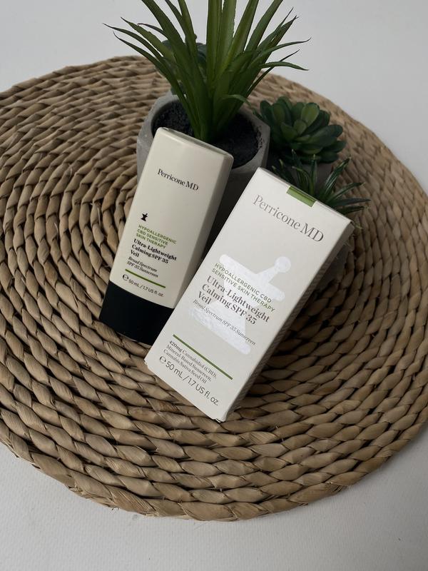 Заспокійливий засіб з захистом SPF 35 - PERRICONE MD HYPO CBD SENSITIVE SKIN THERAPY ULTRA-LIGHTWEIGHT CALMING🌿 Цей надлегкий ніжний сонцезахисний крем, створений на 99% з чистого канабідіолу✨ Забезпечує потужний захист широкого спектру UVA/UVB і підходить для найчутливішої вимогливої шкіри. Заспокоює і пом'якшує, усуває видиму почервоніння і не викликає додаткових алергічних або подразнюючих реакцій. Швидко поглинається шкірою, не залишає білих слідів, має розкішний шовковий фініш.