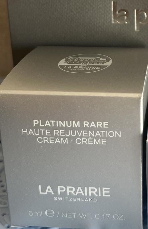 Термін червень 2027. Оригінал. Мініатюри. Вік: 35+ Призначення: антивіковий, відновлення, живлення, зволоження, пом'якшення, від зморшок Час застосування: універсальний Стать: для жінок Класифікація: елітна Тип шкіри: всі типи Країна ТМ: Швейцарія Зроблено в: Швейцарія Об'єм: 5 ml Особливості Platinum Rare Haute-Rejuvenation Cream від La Prairie: - виготовлений на основі ексклюзивного клітинного комплексу; - збагачений регенераційно-омолоджувальними пептидами платини; - ефективно відновлює пошкоджені ділянки шкіри; - делікатний склад адаптований до усіх її типів, зокрема — чутливого; - має сильні заспокійливі, протизапальні, оновлювальні функції; - сприяє зміцненню захисного бар’єра та ліпідної мантії; - запобігає трансепідермальній втраті води; - радикально бореться з передчасними віковими змінами; - зменшує виразність тонких ліній, мімічних зморщок, освітлює пігментацію; - чудово вирівнює відтінок і розгладжує рельєф епідермісу; - нормалізує й підтримує його гідробаланс; - мінімізує ризик появи сухості, лущення, інших ознак дегідратації; - ніжна консистенція миттєво абсорбується; - не створює липкої плівки чи жирності на обличчі; - прикрашає його здоровим виглядом, шармом природного блиску.