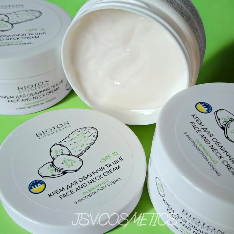 Крем для обличчя та шиї освіжаючий з екстрактом огірка spf10 bioton cosmetics 100 мл