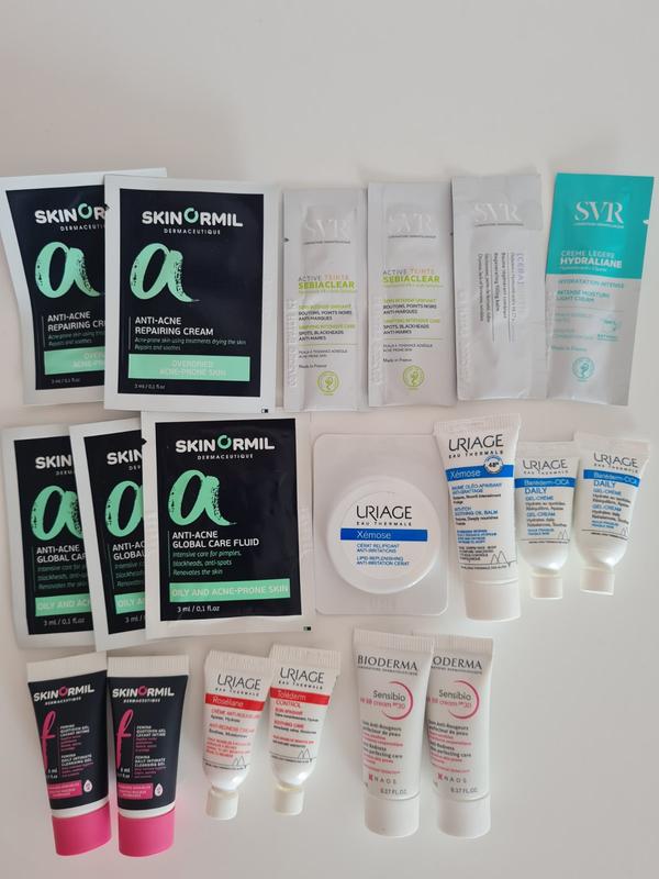 Набір зразків для шкіри обличчя та тіла skinormil SVR Uriage. Продається тільки все разом! Всі терміни в нормі (BB sensibio крем біодерма 2 шт термін до 08.25 в подарунок)