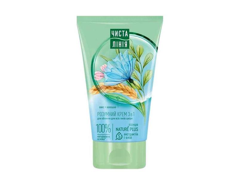 Розумний крем для обличчя та шиї 3 в 1 має особливу формулу, що забезпечує оптимальне живлення і зволоження шкіри весь день. Волошковий відвар прекрасно зволожує, помякшує шкіру, сприяє засвоєнню клітинами поживних речовин. Фітоконцентрат з 12 цілющих трав насичує фітовітамінами, мікроелементами, покращує енергообмін. Протеїни вівса скорочують зморшки, уповільнюють процеси старіння.