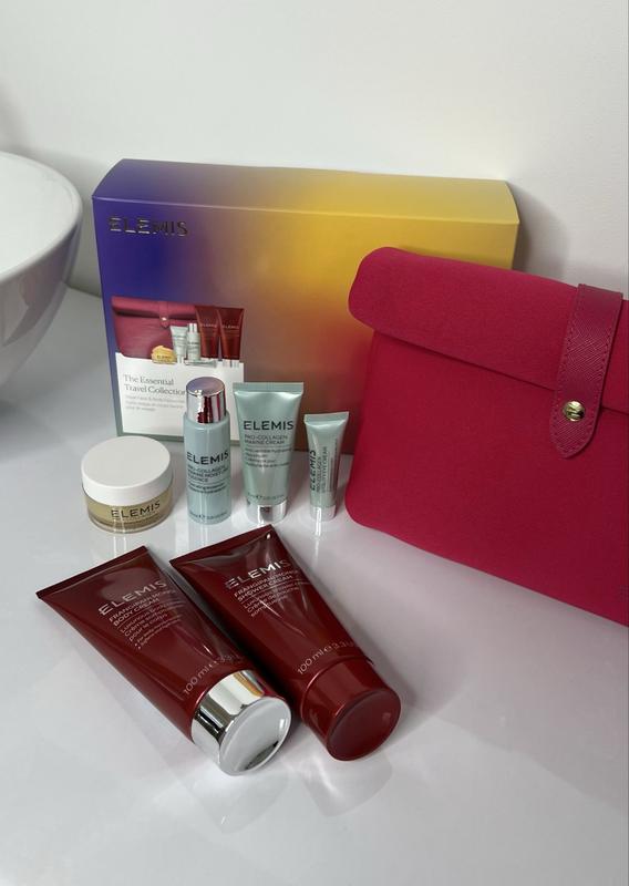 Отримайте істинну насолоду від розкішного догляду для обличчя та тіла The Essential Travel Collection бренду Elemis! У наборі є - Pro-Collagen Cleansing Balm, 20 г. Засіб ретельно видаляє будь-які забруднення, надлишок себуму та залишки декоративної косметики. Він дбає про пори та залишає відчуття комфорту. - Pro-Collagen Marine Cream, 15 мл. Крем на основі антивікових компонентів ефективно бореться зі зморшками, чудово зволожує та зміцнює, надає пружності. - Pro-Collagen Vitality Eye Cream, 4 мл. Продукт запобігає передчасному старінню, створює ліфтинг-ефект, освітлює темні кола навколо очей, має зміцнювальні властивості. - Pro-Collagen Marine Moisture Essence, 28 мл. Сироватка забезпечує глибоке зволоження, мінімізує дрібні зморшки, робить шкіру більш пружною та сяйною. - Frangipani Monoi Body Cream, 100 мл. Засіб наповнює поживними речовинами, дарує дбайливий догляд і залишає ніжний квітковий аромат. - Frangipani Monoi Shower Cream, 100 мл. Крем для душу делікатно видаляє будь-які забруднення, чудово живить і надає м’якості. Набір також містить стильну компактну косметичку Luxury Travel Bag яскравого кольору, яка створює справжню святкову атмосферу та покращує настрій.